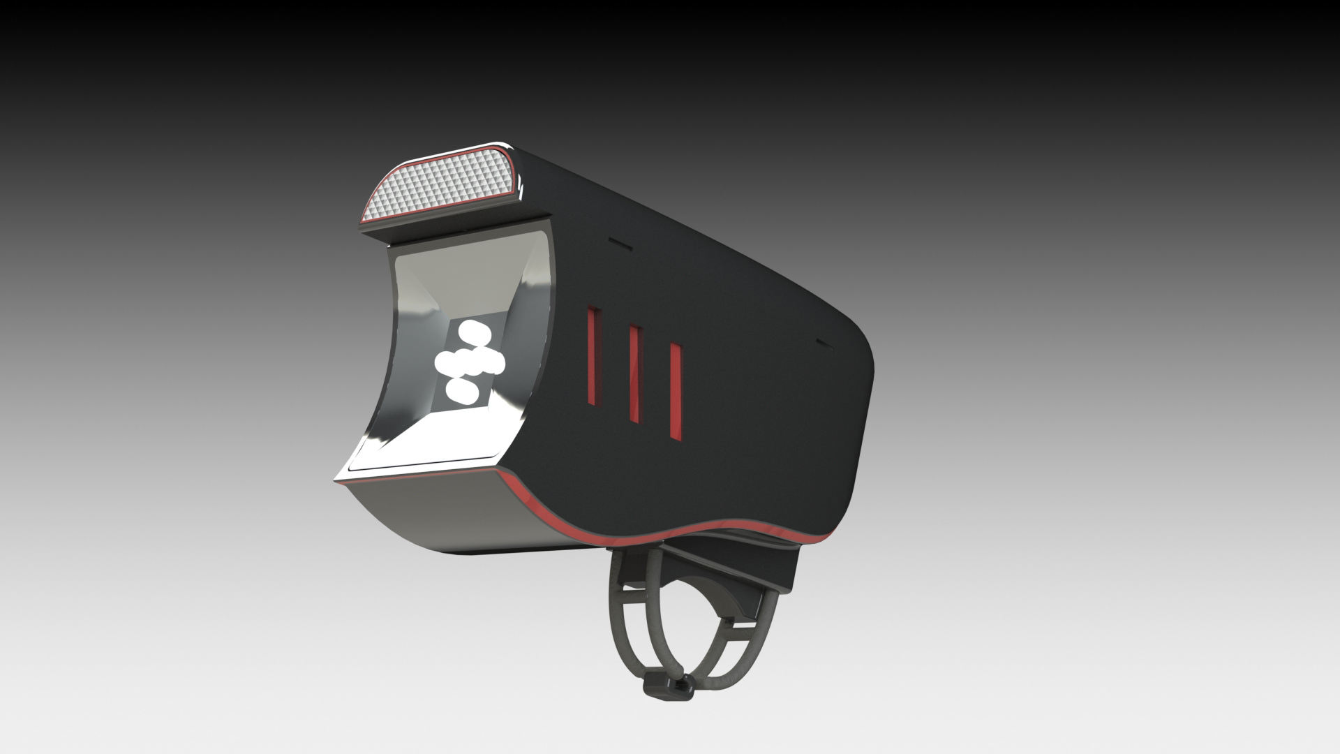 The next stage of the development process was translating a chosen design into solidworks and creating the different components which made up the assembly. The inclusion of a reflector at the front of the concept was paramount as road cycle accidents are a big concern in urban areas. The strap itself consisted of a silicone rubber wraparound hook which allows the light to stay uprighy whilst absorbing the vibration from the road.